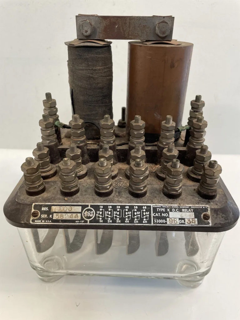 Control box of a restored Alstom Signaling Inc.-predecessor General Railway Signal semaphore signal, Northern Pacific Railway Depot, Washington St. & Railroad Ave, Ritzville, Wash. Photo by Joe Mabel/Wikimedia Commons.
