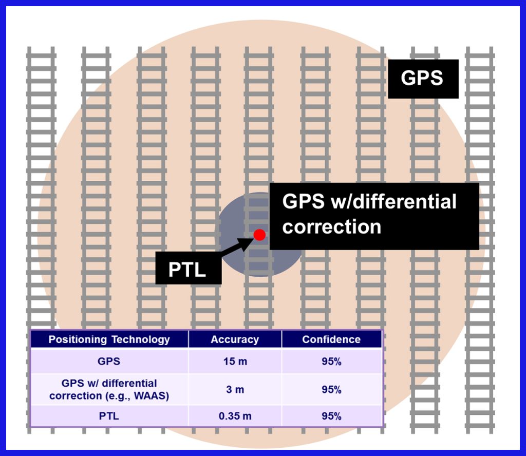The relative inaccuracy of GPS and the manual entry of track information at train initialization often results in operational deficiencies. For these reasons, the Federal Railroad Administration (FRA) Office of Research, Development, and Technology (RD&T) and the railroads cooperatively launched research into innovative methods to precisely locate and track train movements. This research resulted in what is now known as the Positive Train Location (PTL) system, which is being commercialized by the railroad industry and deployed by Class I railroads.