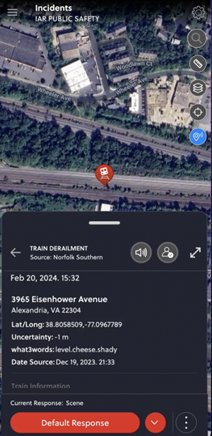 A partnership of first responders and Norfolk Southern via the RapidSOS platform provides train consist information to in the event of a major derailment.