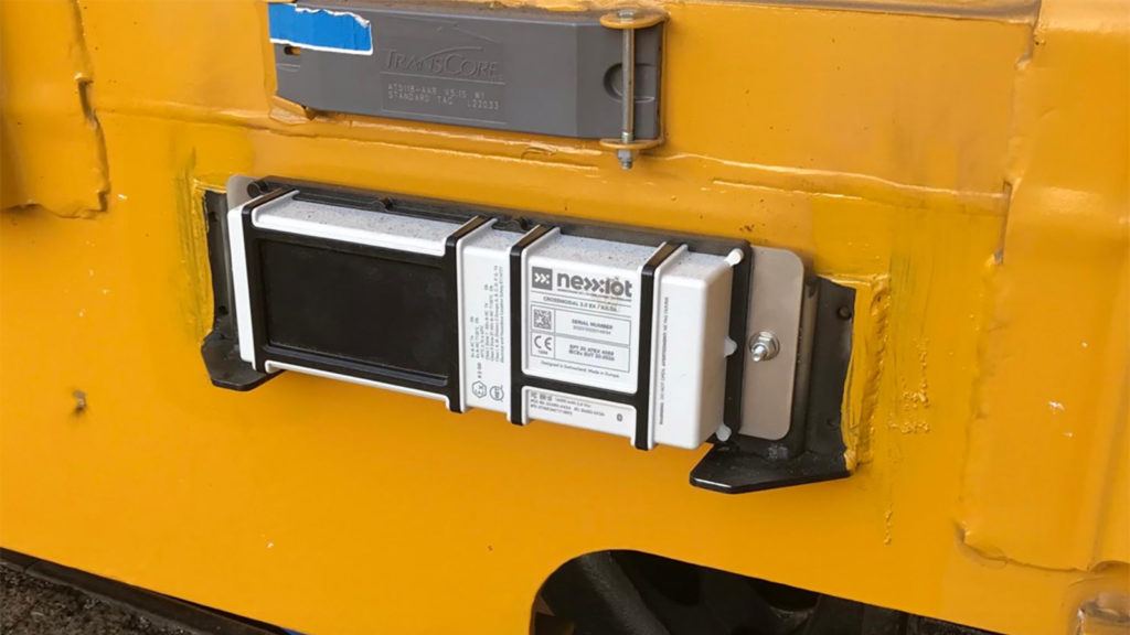 Union Pacific, through its involvement in RailPulse, is accelerating use of GPS and other telematics technologies. Pictured is a Nexxiot GPS device installed on a UP freight car.