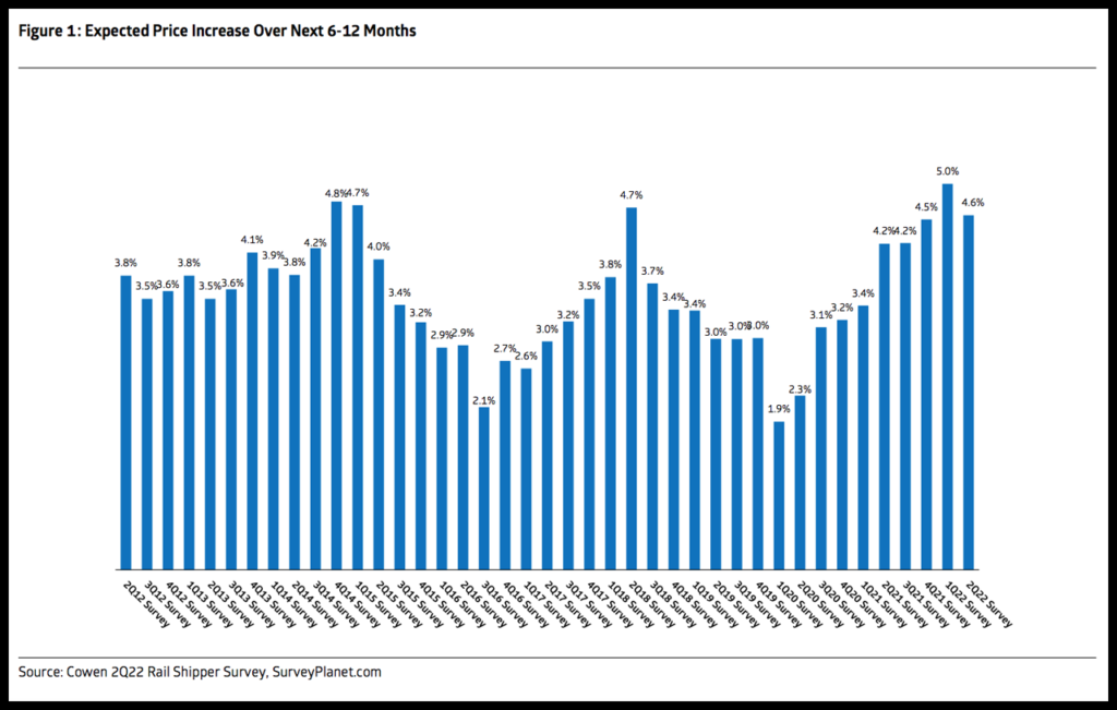 According to Cowen and Company’s recently conducted second-quarter 2022 Rail Equipment and Rail Shipper Surveys, the outlook for railcar orders is positive, and rail shipping rates will continue to increase. Details follow, plus insights on the Class I railroads, ahead of earnings.