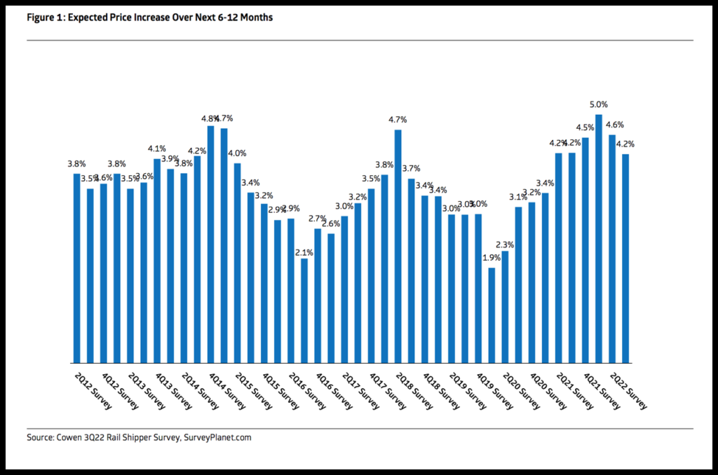 According to Cowen and Company’s recently conducted third-quarter 2022 Rail Equipment and Rail Shipper surveys, the positive outlook for railcar orders remains relatively unchanged from the second quarter, and rail shipping pricing expectations have ticked down sequentially. Details follow, plus insights on the Class I railroads, ahead of earnings.