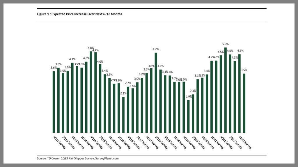 The results of our 1Q23 Rail and Equipment Surveys indicate a slight decrease in business growth expectations, and some resilience in railcar demand.