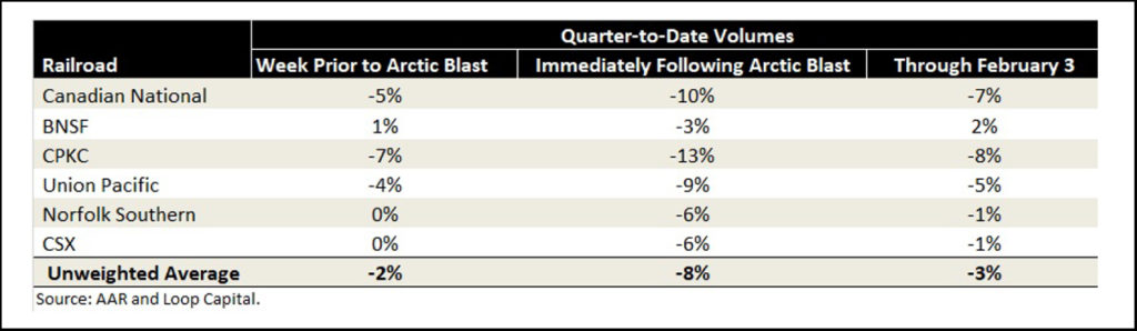 More important, the bigger long-term goal here is an industry that has enhanced resiliency and recoverability to the extent that it can better take on the trucks and win back some customer business. Growth: The reason we’re over-analyzing the Arctic Blast is because it’s the first little piece of evidence, post-Service Crisis, in this endeavor.