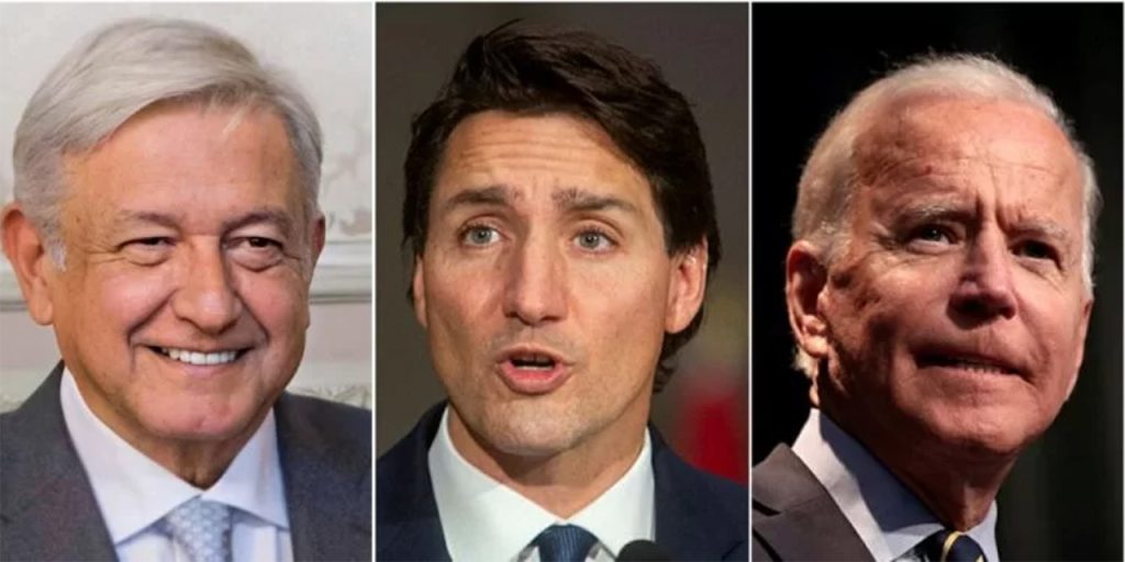 Left to right: Mexican President Andrés Manuel López Obrador, Canadian Prime Minister Justin Trudeau, U.S. President Joe Biden.