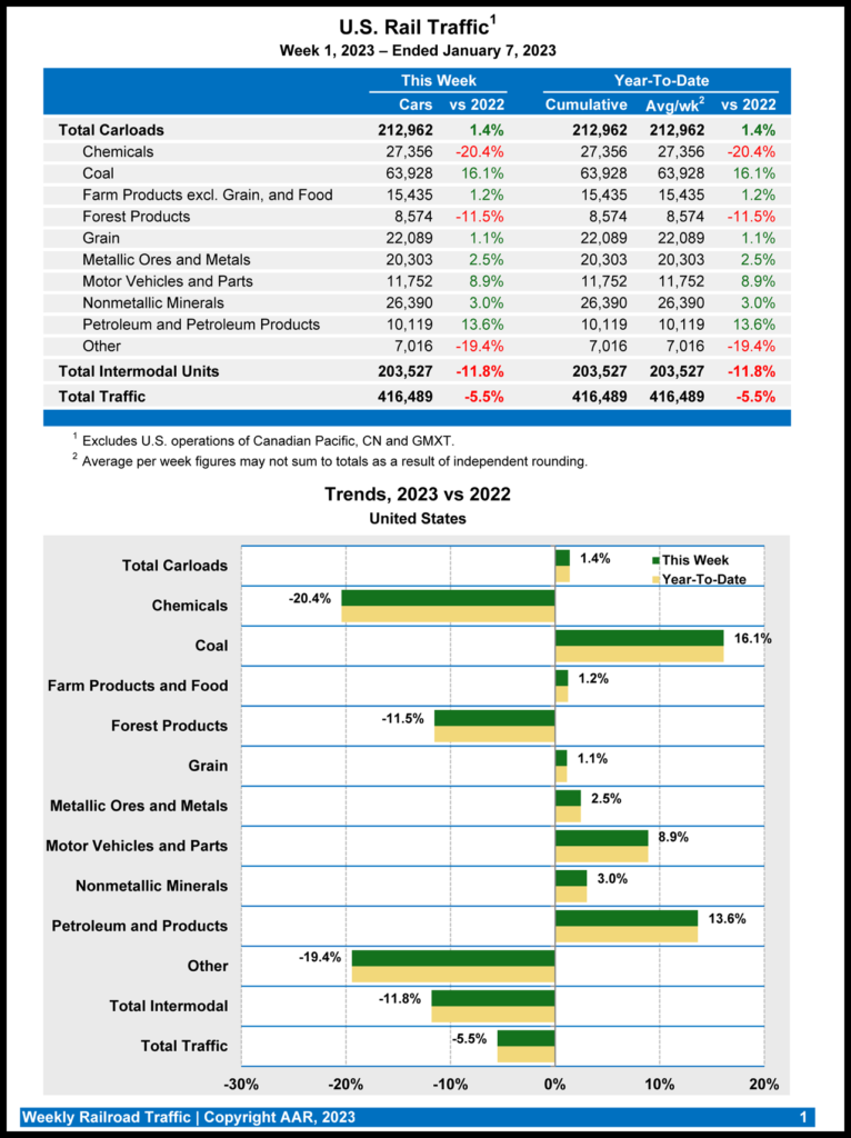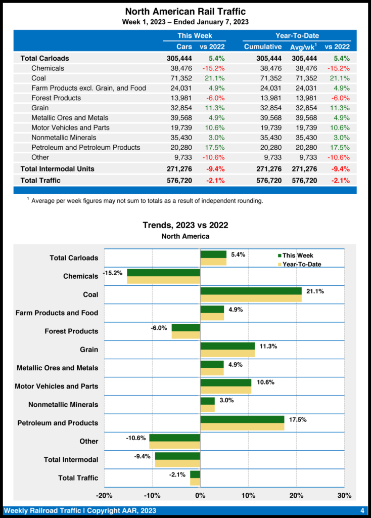 AAR: U.S. Rail Traffic Results Mixed as 2023 Begins