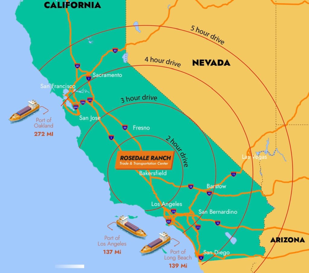 For example, one recently announced site named Rosedale Ranch, in Kern County, provides excellent access to “markets,” at a cost. This option involves conversion of up to 1,600 acres of assembled single ownership land northwest of Bakersfield in the heavily populated and growing Central Valley. But with competing land use options across residential and industrial/commercial demands, market prices are significantly higher.