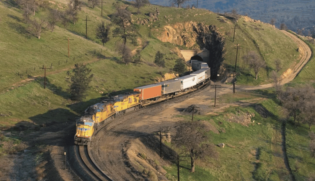Located just south of the Sequoia National Forest and just north of Los Angeles, UP said that Tehachapi is home to a railroad engineering marvel: the Tehachapi Loop. “The 0.73-mile section of track literally forms a circular loop, allowing the track to rise at a steady 2% grade,” according to the Class I railroad. “With a tunnel at the base of the loop and another track that passes above it at the other end, any train longer than 4,000 feet will pass over itself—an engineering feat and a rare sight to see.”