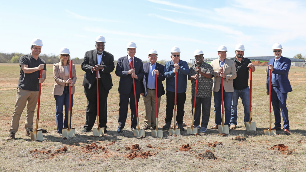 UP Senior Director Economic Development Aaron Evans on March 28 joined local and state officials for the groundbreaking of a railroad spur to the Soldier Creek Industrial Park in Midwest City, Okla. When completed, the spur will provide rail connectivity to the American Glass, Inc., headquarters that is currently under construction.