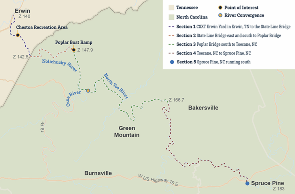 The railroad has advanced to the track-laying phase along the scenic gorge. “It has taken roughly 10 months to get the roadbed ready for the track panel installation,” CSX Director of Track Kevin Haddix said.