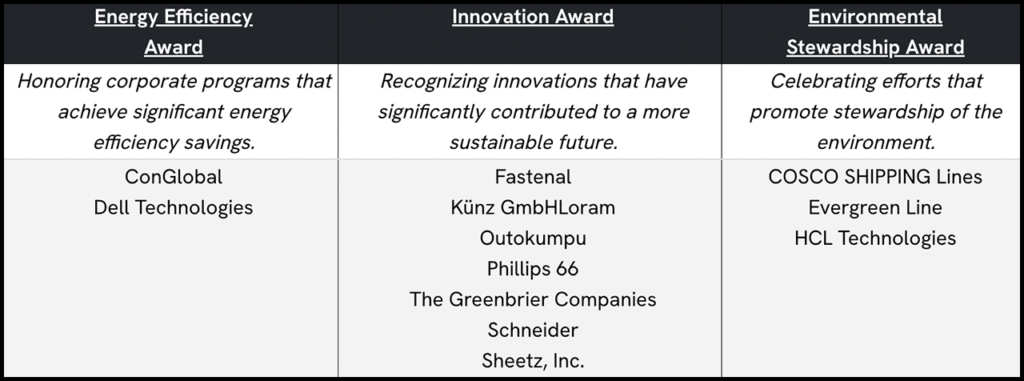 “Taking strides to reduce our environmental impact goes beyond our own initiatives; it involves actively supporting our partners in reaching their sustainability targets as well,” NS Chief Sustainability Officer Josh Raglin said. “This year’s 13 honorees stand out as trailblazers in environmental leadership. Recognizing their accomplishments is pivotal as we collectively work towards building a better, more sustainable planet.”
