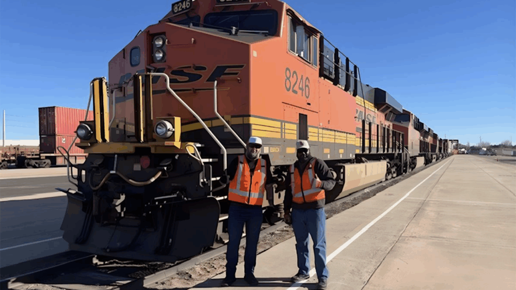 BNSF Locomotive Engineer Dane Sargent and Conductor Kolic Edwards on Dec. 31 delivered the first load to its new intermodal ramp in Oklahoma City (pictured above). Included was freight from customer Hobby Lobby.