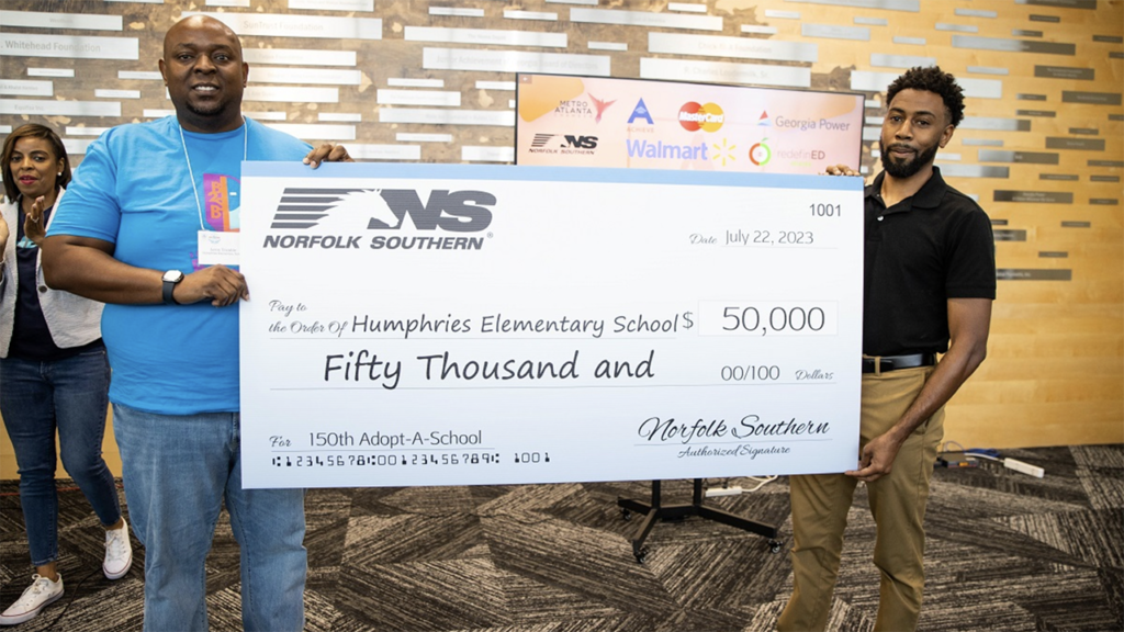The Dunbar and Humphries elementary schools in Atlanta, Ga., each received a $50,000 donation from NS’s J. Whitaker Group Employee Resource Group (ERG), the Class I railroad reported July 27. One of NS’s seven ERGs, the J. Whitaker Group was named after the first African American locomotive engineer for NS predecessor Central of Georgia Rail.