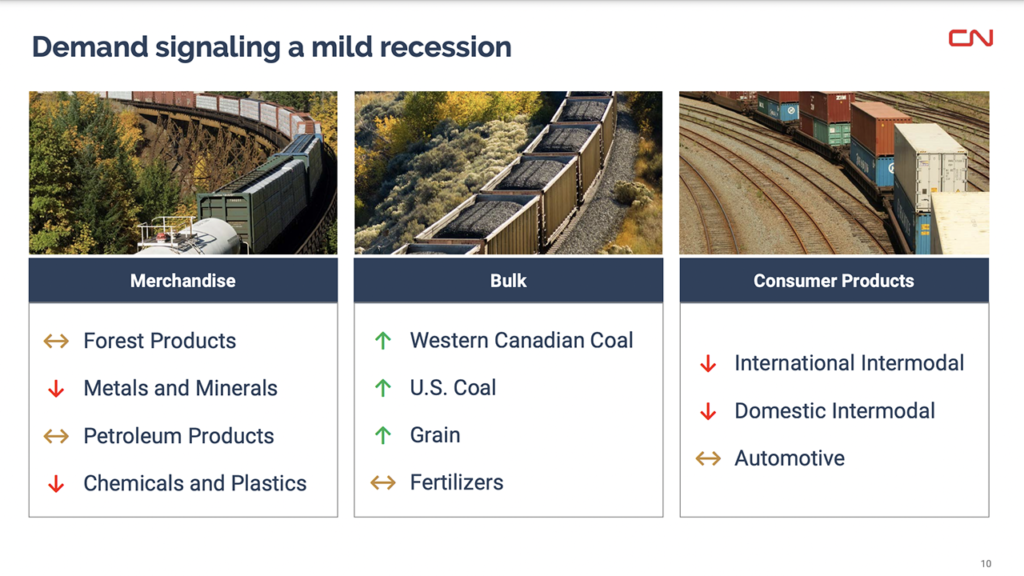 CN also noted that “North American industrial production [is] still assumed to be negative in 2023.”