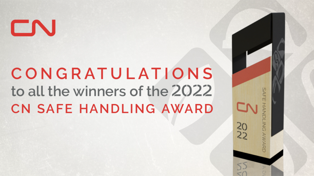 CN also announced the 220 honorees (see list below) of its Safe Handling Awards for 2022. The awards are presented to customers “who load freight cars with dangerous goods and meet strict standards for the safe handling and shipment of regulated products,” reported the railroad, which noted that customers must meet established criteria, according to the total number of shipments of dangerous goods for all facilities.