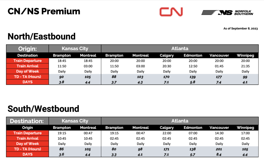 CN and Norfolk Southern (NS) on Sept. 11 announced a new domestic intermodal service linking CN-served Canadian markets with NS-served Kansas City and Atlanta, “the heart of the fast-growing manufacturing and consumer base in the Southeastern U.S.”