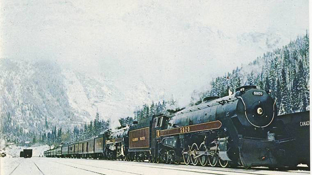 CP T1b 2-10-4 Selkirk type 5920 assisting T1b 5923 on Passenger Extra 2863, the 1951 Royal Train, headed west at Glacier, B.C. The train has just climbed from Beavermouth and, in the five-mile-long Connaught Tunnel, crossed the summit at 3,787 feet. The tunnel was named for the Duke of Connaught, Canada’s Governor General from 1911 to 1916, the year the tunnel was opened. CP photo.