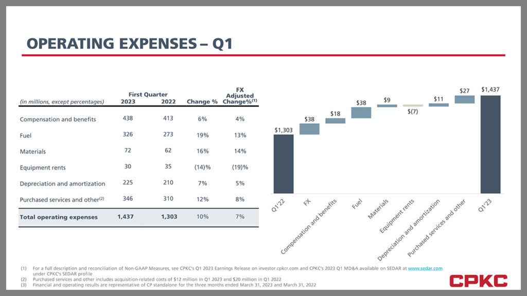 “In our final quarter before our historic combination, the CP team delivered solid results driven by our investment in capacity, service and continued focus on safety,” said Keith Creel, CPKC President and CEO. “Our strong bulk franchise, fueled by a robust Canadian grain harvest, plus competitive service offerings in intermodal, helped produce these results, providing momentum as we begin our journey as CPKC. Since we first announced our intention to combine CP and KCS more than two years ago, we never lost our conviction that a CP-KCS combination is right for our railroaders, our customers, our stakeholders and the North American economy. We are excited to have united the talented railroaders at CP and KCS to form our new CPKC family and are working to deliver on the synergies and countless benefits the combined company will produce.”