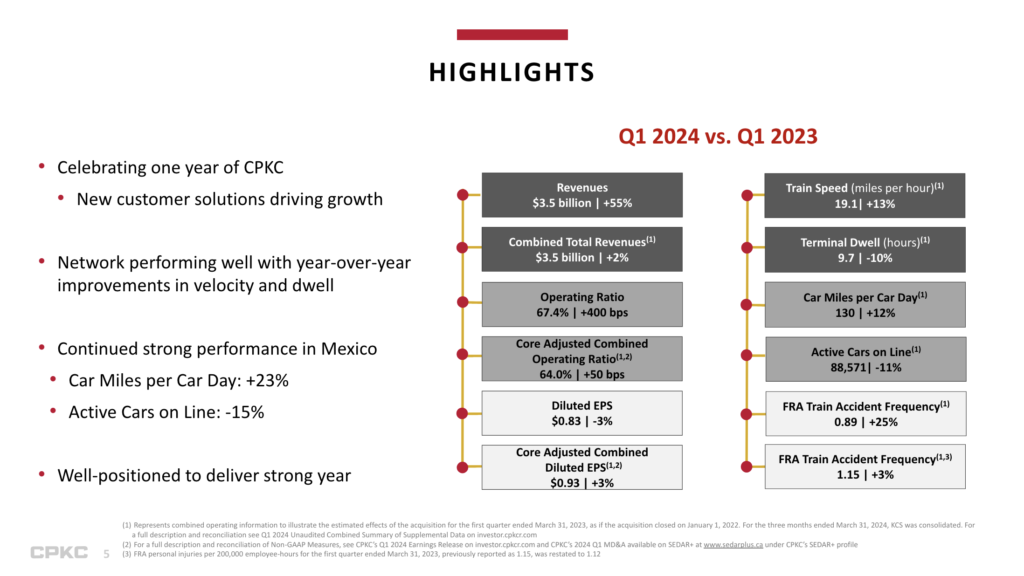 CPKC 1Q24: ‘Well Positioned to Deliver on 2024 Guidance’