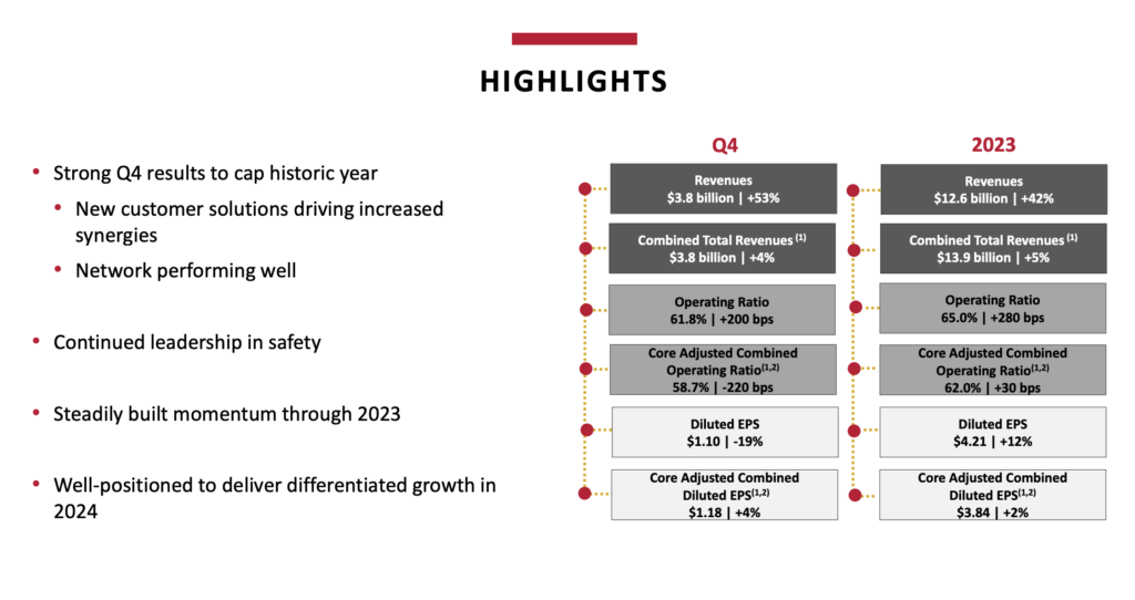 Among CPKC’s other fourth-quarter 2023 highlights: