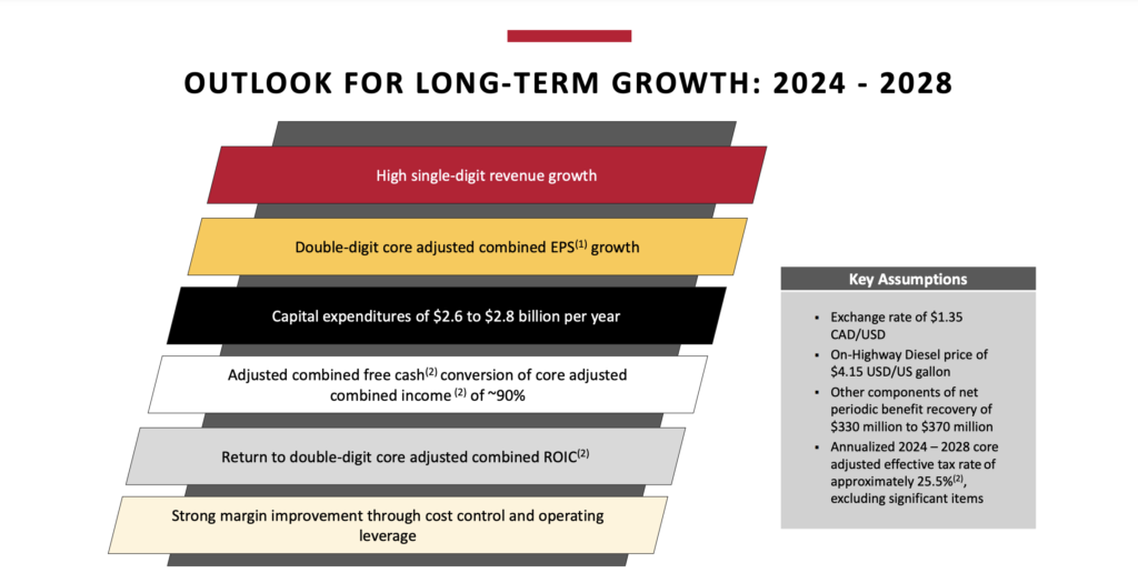 - CPKC expects core adjusted combined diluted EPS2 to grow double digits versus 2023 core adjusted combined diluted EPS2 of $3.84.