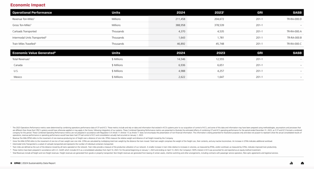 Following are among CPKC’s metrics for 2024: