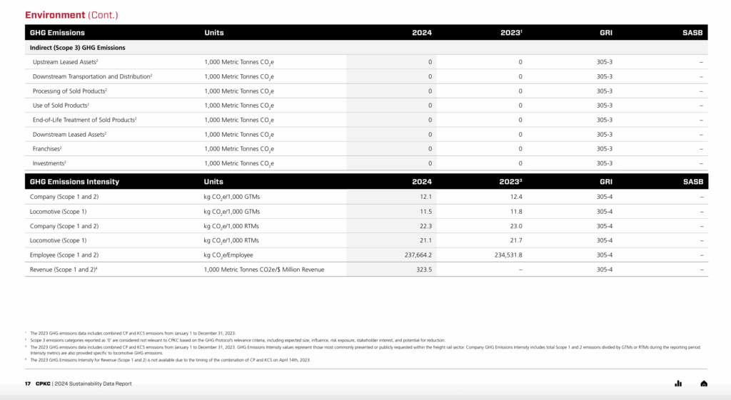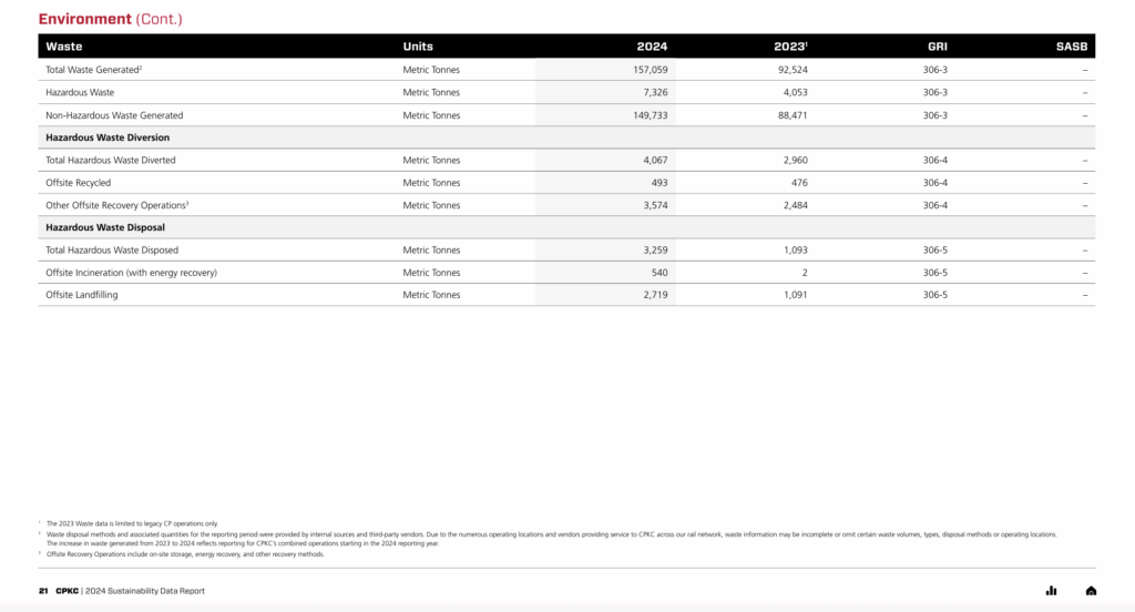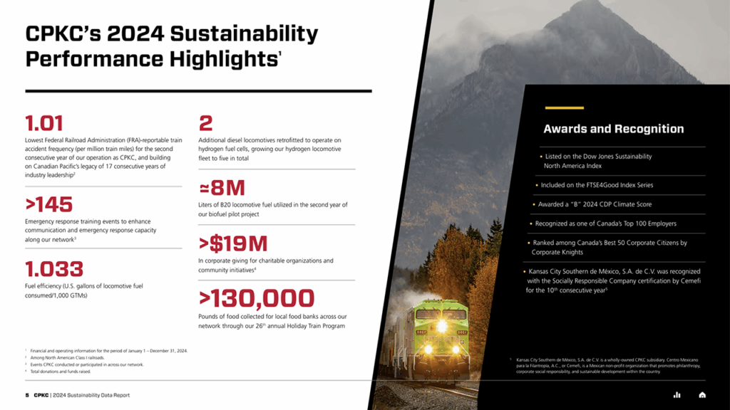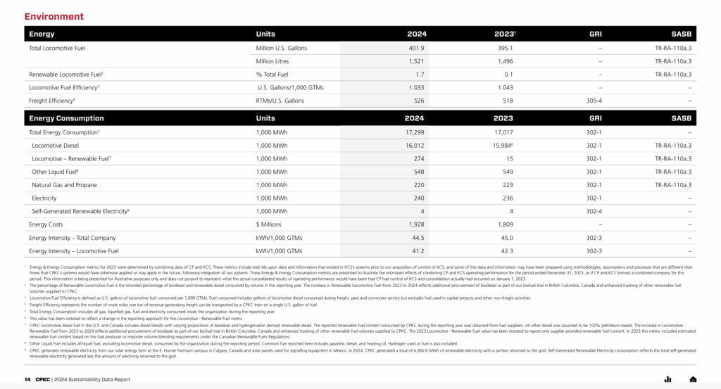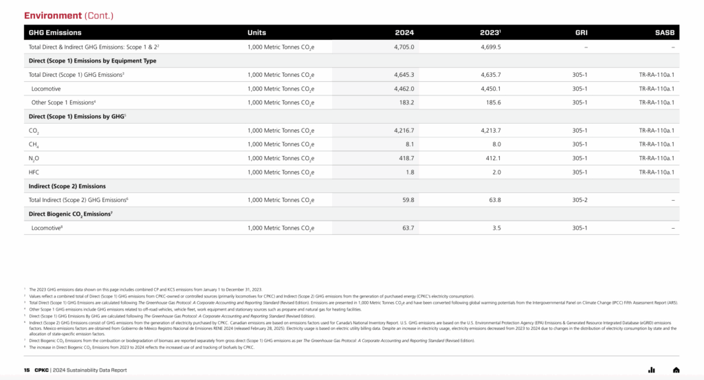 CPKC has published its latest sustainability data report, which comprises environmental, social and governance data for the 2024 calendar year.