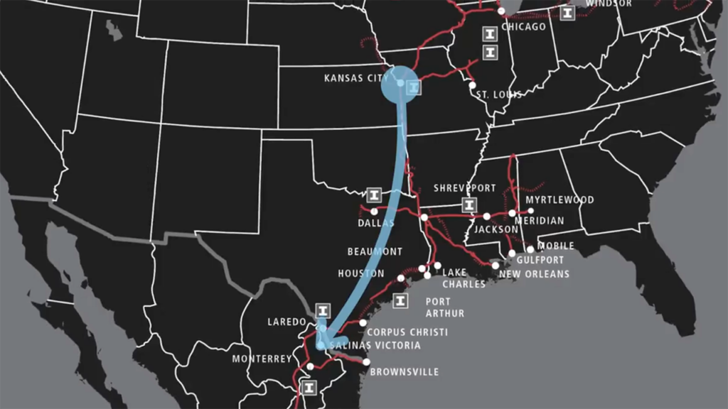The collaboration, it said, offers temperature-controlled rail service for perishable commodities like produce and protein from Kansas City, Mo., to Mexico (see map above); it provides customers “with direct access to an integrated, end-to-end cold chain network designed for reliability, efficiency, and compliance.”