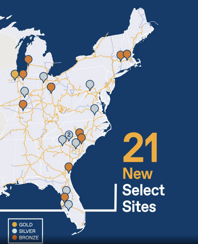The newly added CSX Select Sites are: