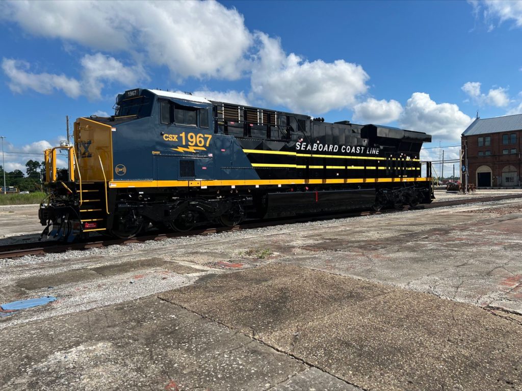 CSX recently revealed its latest heritage locomotive—a tribute to the Seaboard Coast Line (SCL)—fresh out of the Class I railroad’s paint shop in Waycross, Ga.