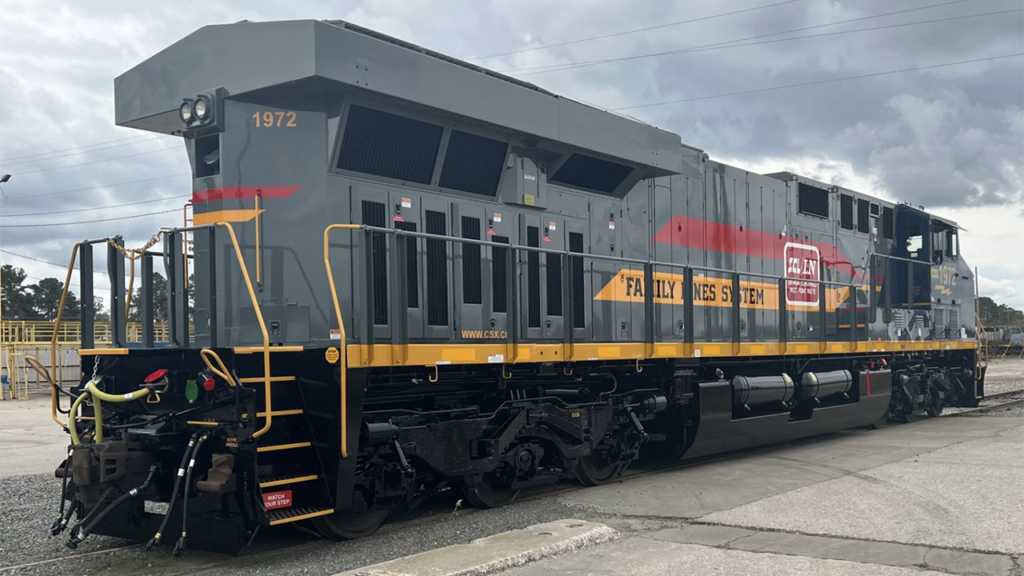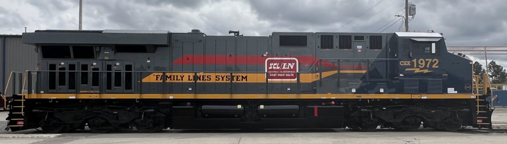 CSX ES44AH No. 1972, in the Family Lines System theme, is the eleventh in a series of heritage locomotives to roll out of the Class I railroad’s Waycross Mechanical Shop in Georgia. Its number recognizes the Family Line System’s first year.