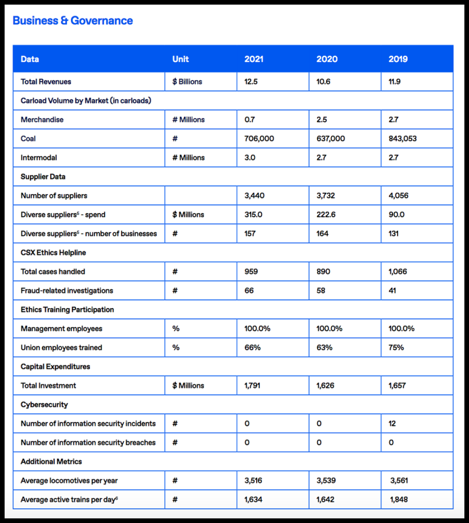CSX has released a new environmental, social and governance (ESG) report, covering its performance in 2021.
