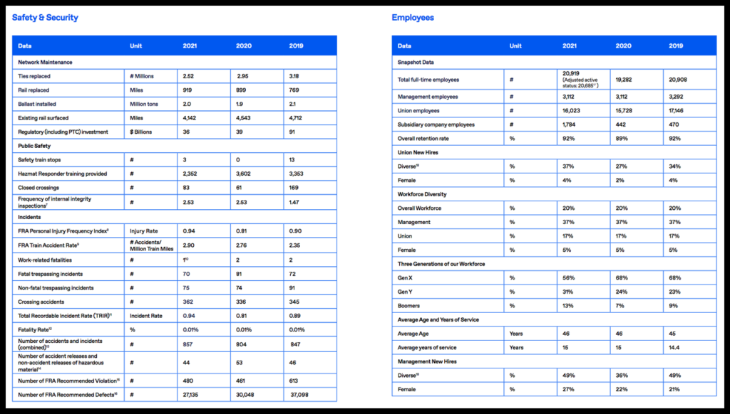 Among the Class I railroad’s 2021 report highlights:
