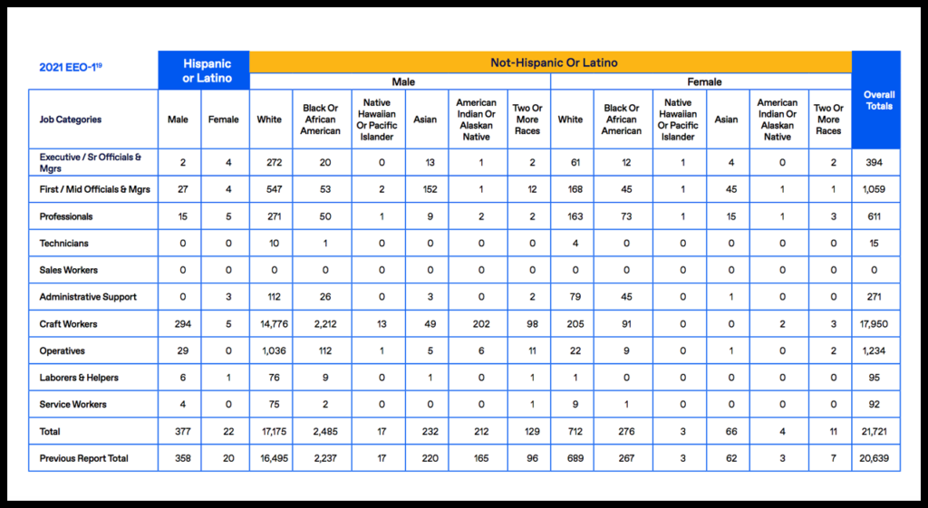 • Diversity and Inclusion: CSX released workforce EEO-1 data (see below) as it “works to build a workforce that reflects our communities”; launched new recruiting and interview training initiatives to mitigate unconscious bias; and relaunched its Military Business Resource Group.