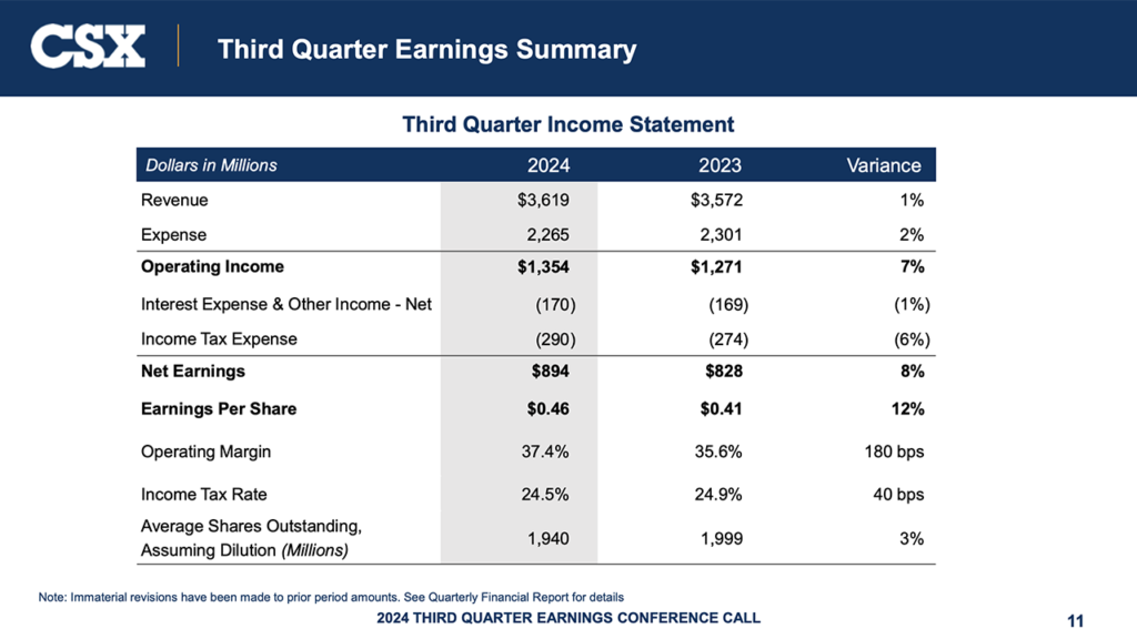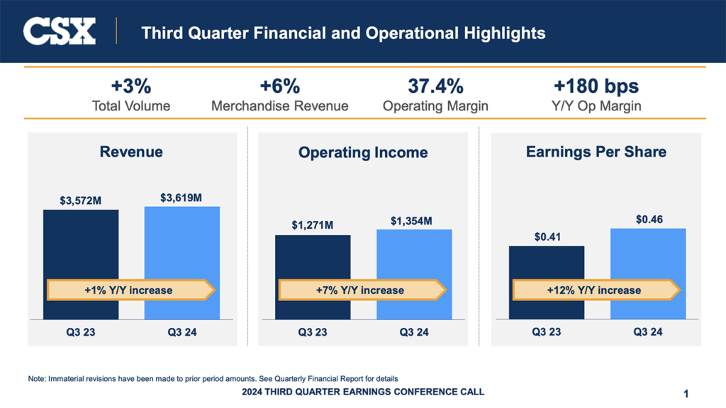 Following are CSX’s third-quarter 2024 financial highlights: