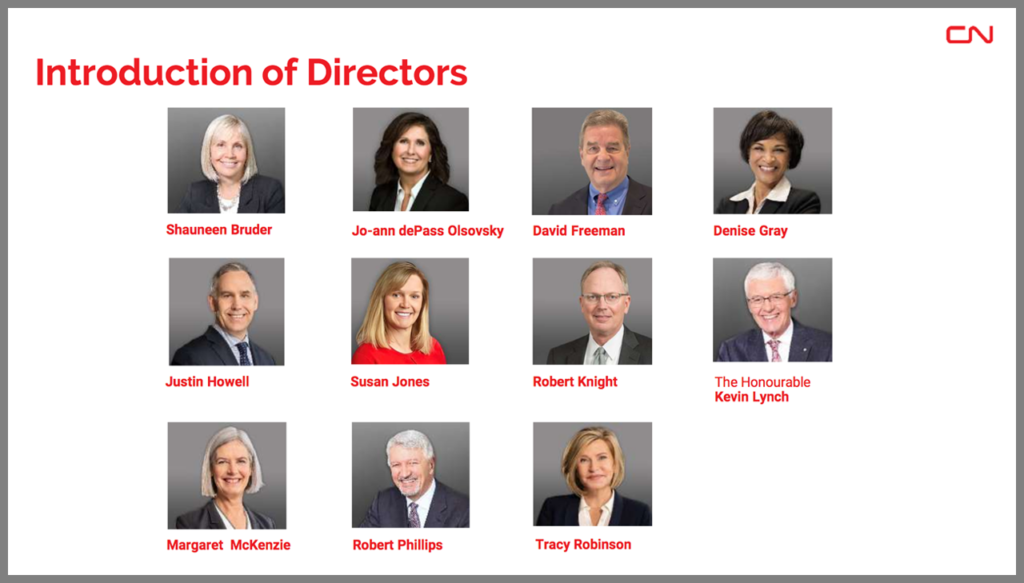 Shauneen Bruder (pictured) and 10 other Director nominees proposed by CN management were elected to the CN Board at the railroad’s annual meeting of shareholders on May 20.