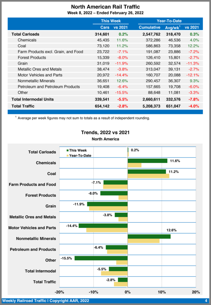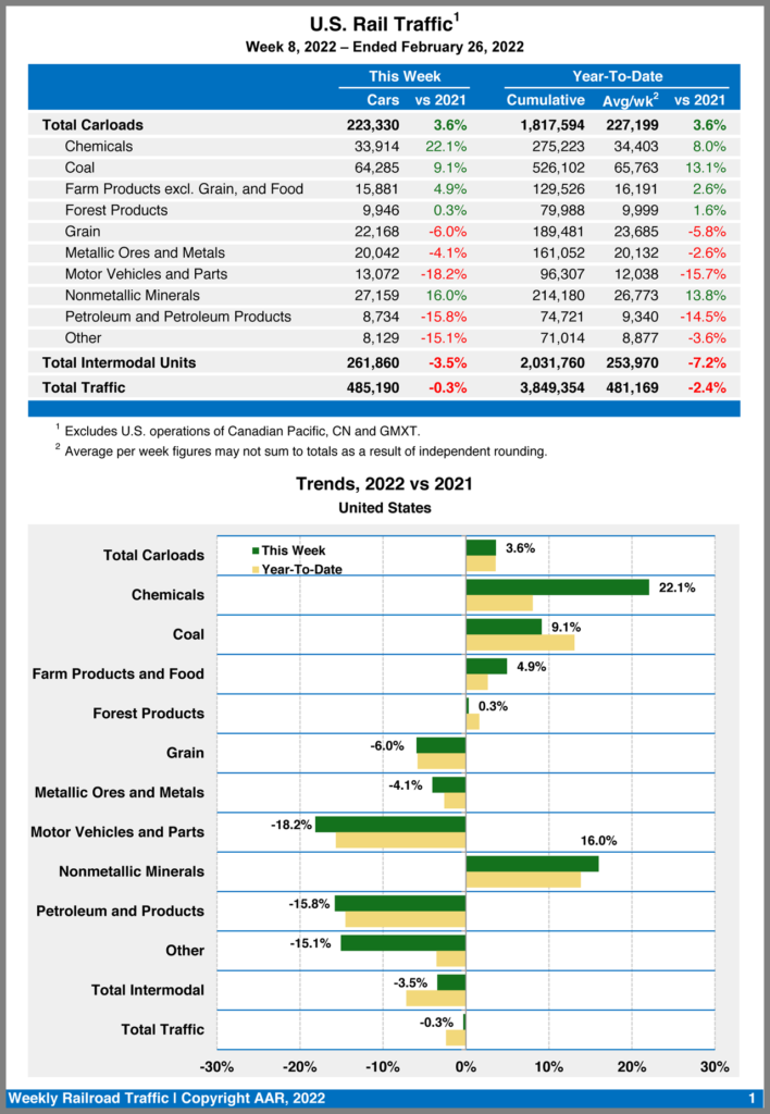 (For January 2022 rail traffic details, read: “U.S. Rail Traffic Lags in January.”)