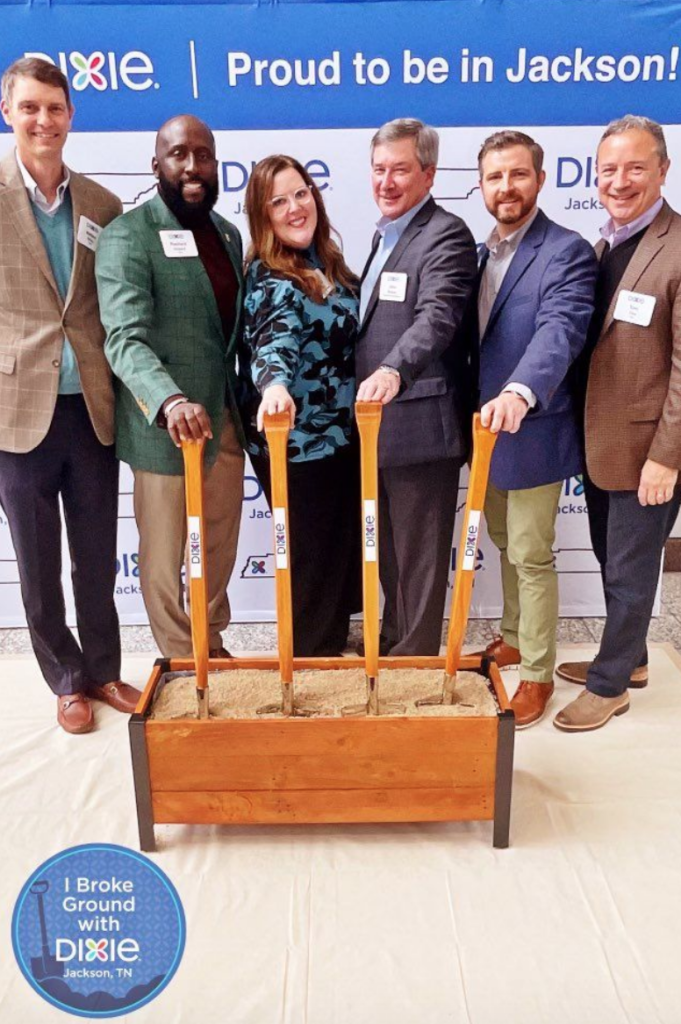 Dec. 9, 2022 groundbreaking of the new Dixie facility in Jackson, Tenn. Pictured: Jeff Fleck (GP), Scott Conger – Jackson Mayor, Mike Cook (GP), Kyle Spurgeon – President/CEO, Greater Jackson Chamber, Carrie Shapiro – VP of Dixie® Manufacturing, Bill Lee – Tennessee Governor, Nate Smiga (GP), Stuart McWhorter – Commissioner, Tennessee Economic and Community Development, Andrew Noble (GP), AJ Massey – Madison County Mayor. (Caption and Photograph Courtesy of Georgia-Pacific)