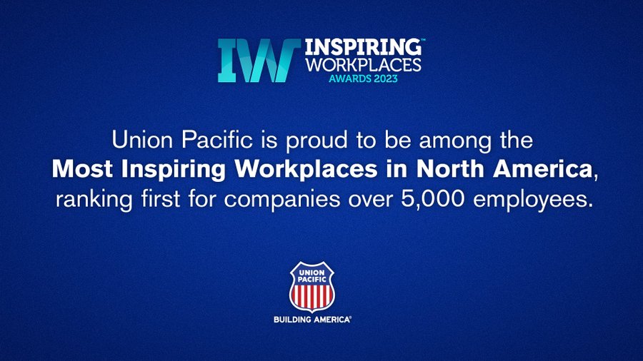 Editor’s Note: Union Pacific (UP) announced June 10, via a Twitter post, that is has been named to the Top 50 Inspiring Workplaces in North America list. Companies were ranked on six criteria: culture and purpose; leadership; wellbeing; inclusion and diversity; communication; and employee experience. The full list can be found here. — Carolina Worrell