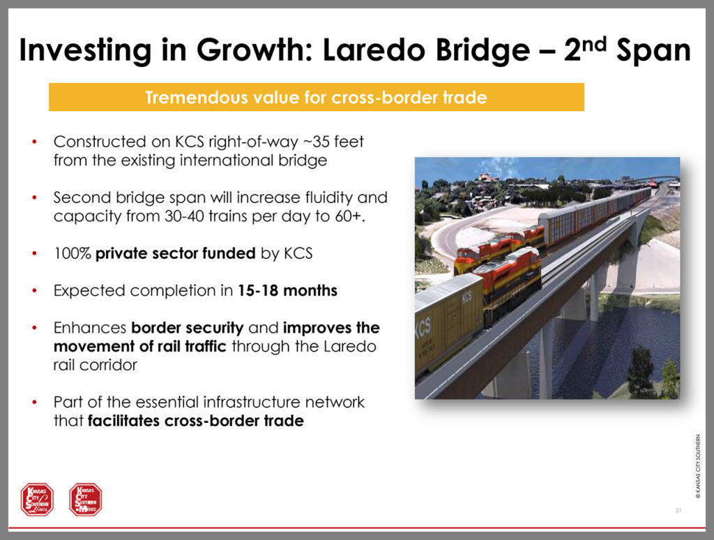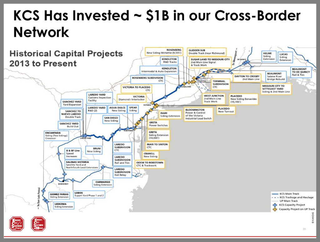 Three years later—March 14, 2023, one day before the Surface Transportation Board approved the CPKC merger—KCS President and CEO Pat Ottensmeyer gave a presentation, “Nearshoring in Mexico: A Lifetime Opportunity,” at Railway Age’s Next-Generation Freight Rail Conference in Chicago. As Railway Age’s 2020 Railroader of the Year and 2022 Co-Railroader of the Year with CP President and CEO Keith Creel, he has talked extensively about nearshoring, and his role as chair of the U.S. Chamber of Commerce U.S.-Mexico Economic Council, in which he worked to ensure that the rail industry has a voice by working with public- and private-sector leaders to strengthen bilateral commercial ties. Ottensmeyer retired as KCS chief executive on April 14, 2023, when CPKC’s Final Spike ceremony took place, and is now a special advisor on Mexican affairs to CPKC chief executive Creel.