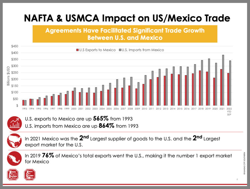 Nearshoring, in which manufacturing is relocating from Asia—mostly China—to North America—mostly Mexico—is one of the key drivers behind creation of CPKC (Canadian Pacific Kansas City), the first and only transnational, single-line railroad linking Canada, the United States and Mexico. CPKC, the merger of the Canadian Pacific and Kansas City Southern, was originally announced on March 21, 2021, roughly one year after USMCA (United States-Mexico-Canada Agreement) was ratified, replacing NAFTA (North American Free Trade Agreement), which had been in place since the mid-1990s and helped drive privatization of Mexico’s national railroad system.