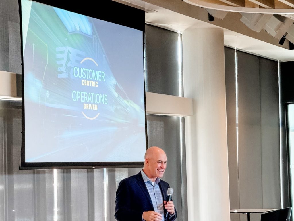 Shawn Tureman, VP Intermodal Automotive, talked about how the company’s new strategy to chart a better way forward for the rail industry is helping the Intermodal franchise be even more competitive: “We’re delivering resiliency by investing in our workforce, enhancing technology and simplifying processes, and seeking smart, sustainable growth opportunities that yield long term growth.” Also during the question and answer, Shawn was asked, “How do you expand your network?” He responded, “We begin investments before they’re needed, and we work to lead demand with smart capacity.” The same audience member also stated, “Thank you for your commitment to safety and service… we’re seeing an immediate impact of what you’re doing – including in driver dwell time.”