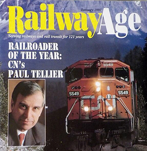 Tellier reduced the size of the CN workforce from 36,000 to 17,000 by 2000. As a result, productivity per employee rose by one-third and revenue per employee grew some 30% by the end of 2000. He aggressively pursued savings to improve the railroad’s cost basis and earn the investment-grade credit rating needed to attract shareholders. In November 1995, the CN was privatized. At C$2.2 billion, it was the largest IPO in Canadian history. For his leadership, Tellier was named Railway Age’s 1997 Railroader of the Year.