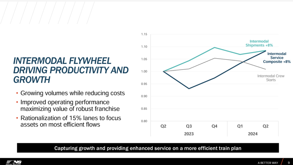 “During the quarter, we demonstrated that we are leveraging our service product to secure volume growth, enhancing our safety culture, and accelerating operational improvements, while eliminating service recovery costs,” said Norfolk Southern (NS) President and CEO Alan H. Shaw during a second-quarter 2024 financial report on July 25.
