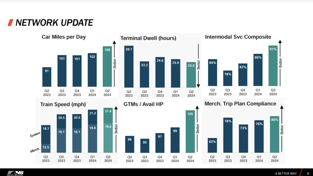 NS also provided a network update and related results. Following are key charts from the Class I’s presentation: