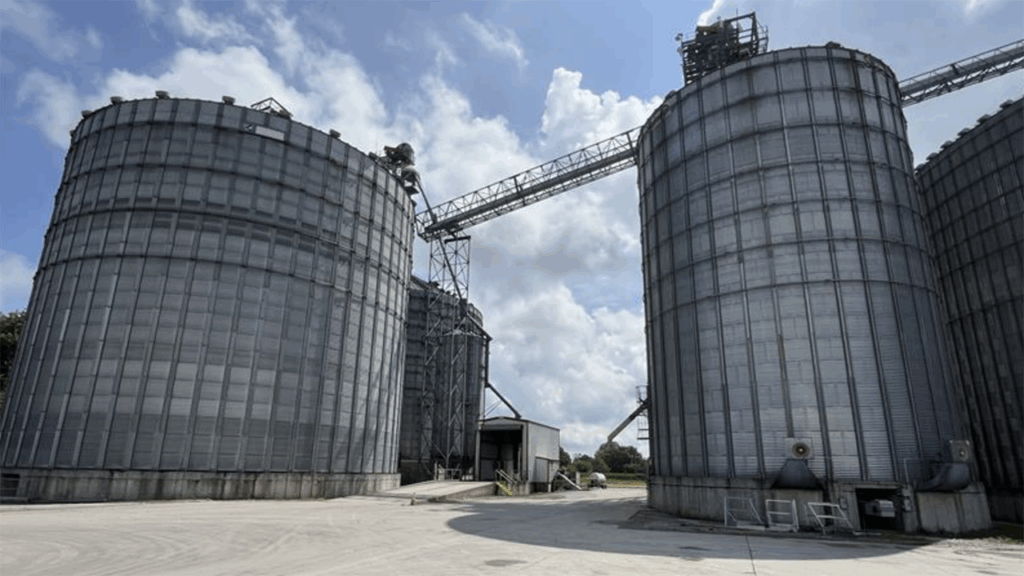 The corn, soybean, and wheat facility ships grain via rail to poultry markets in Mississippi and export markets in the Gulf.