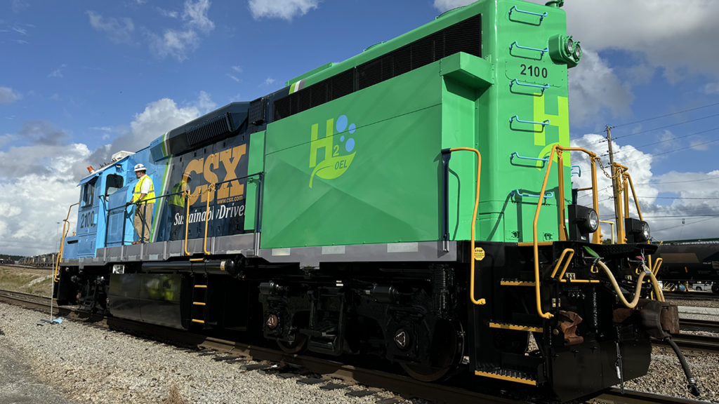 HFC (hydrogen fuel cell) switcher, developed jointly with CPKC, at Rice Yard, Waycross, Ga. William C. Vantuono photo