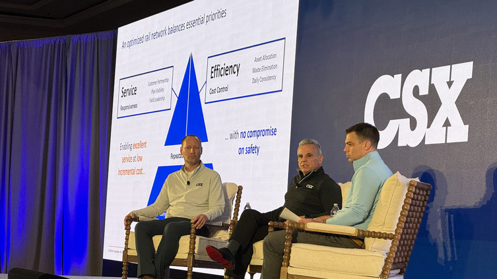 Left to right: CSX SVP Network Operations and Service Design Casey Albright, EVP and COO Mike Cory, and EVP and CFO Sean Pelkey. William C. Vantuono photo