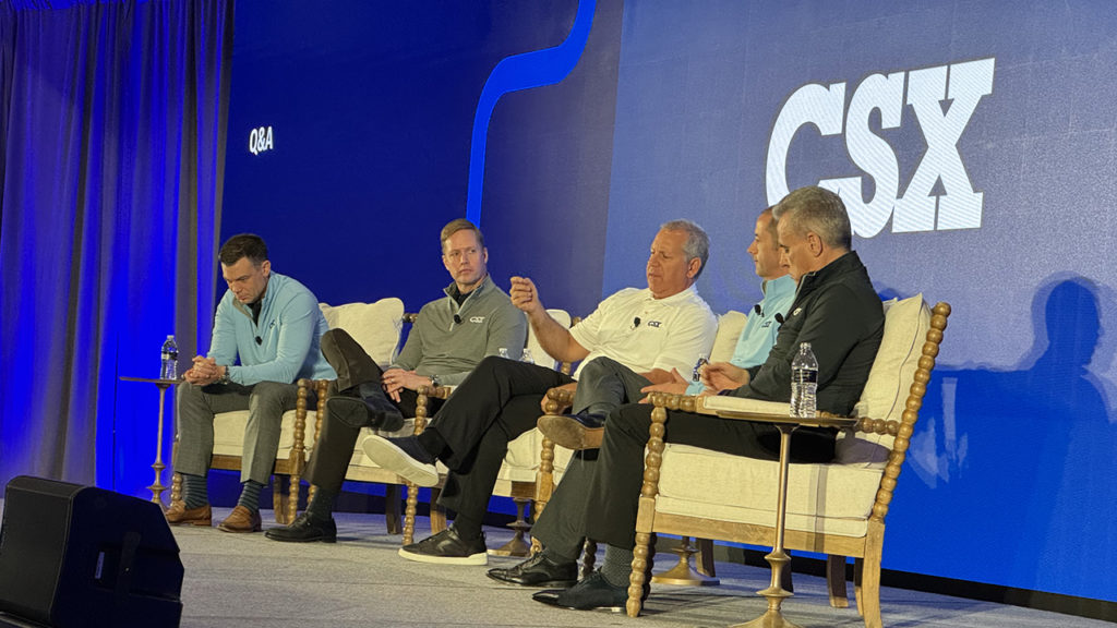 Left to right: CSX EVP and CFO Sean Pelkey, EVP and CCO Kevin Boone, President and CEO Joe Hinrichs, EVP and Chief Digital and Technology Officer Steve Fortune, and EVP and COO Mike Cory. William C. Vantuono photo
