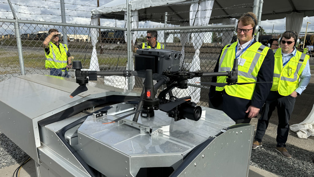 Track inspection drone demonstration at Rice Yard, Waycross, Ga. William C. Vantuono photo